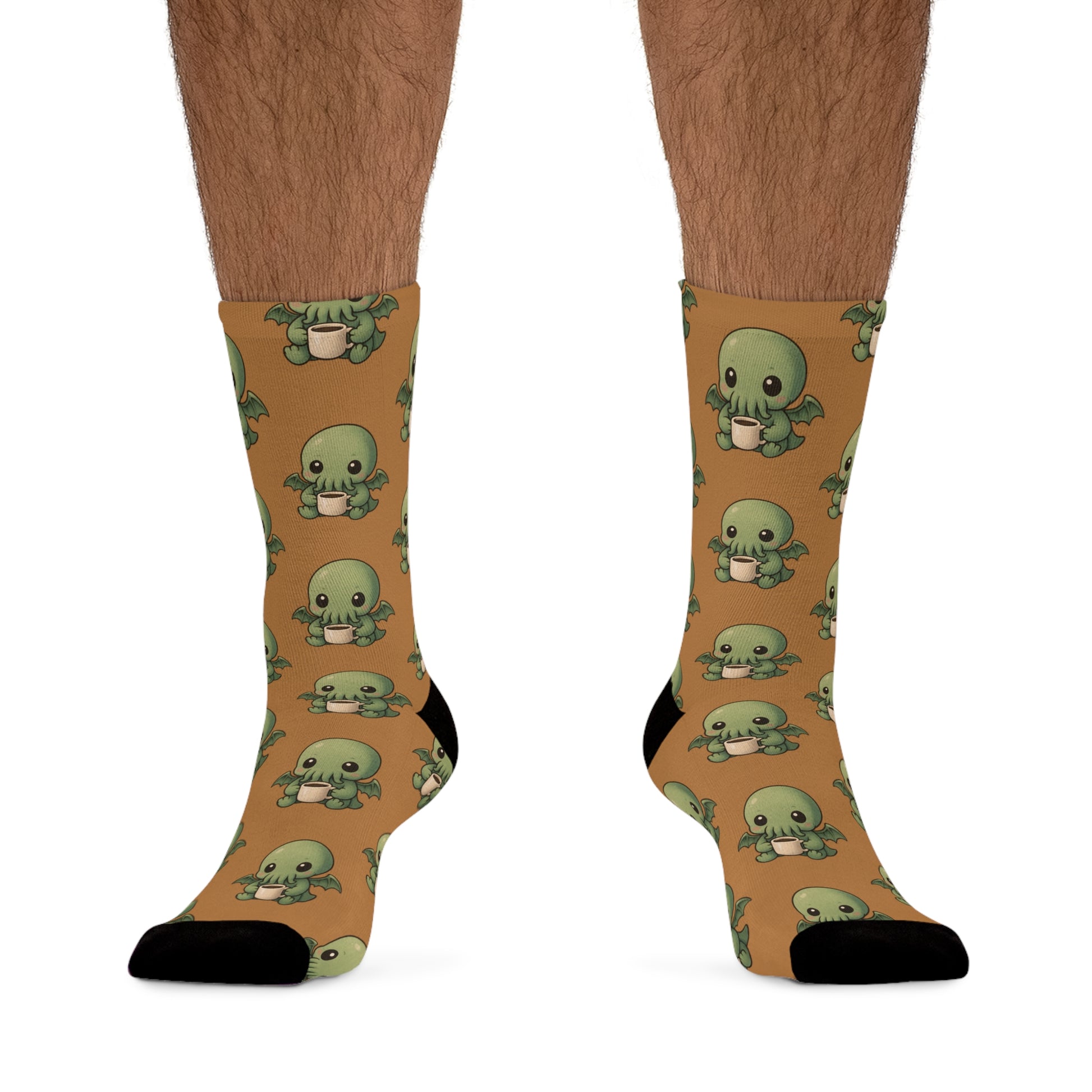 Eco-Friendly Cthulhu Coffee Print Socks, Fun Casual Footwear, Gift for Sea Lovers, Unique Sustainable Fashion, Perfect for Everyday Wear