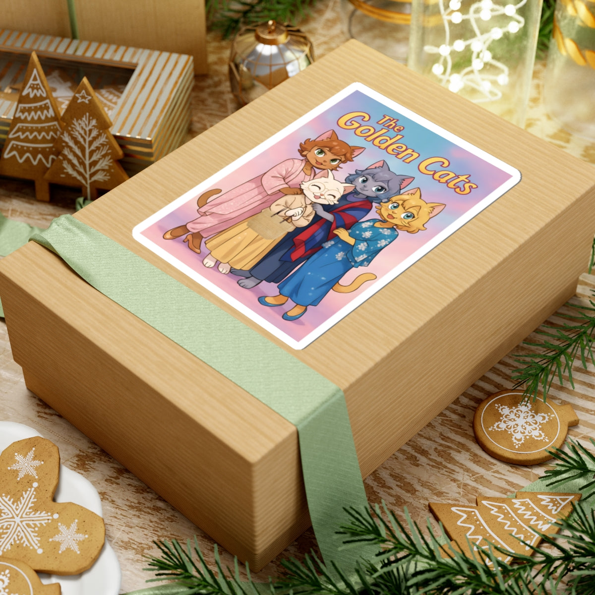 Golden Cats Kiss-Cut Stickers - Cute Cat Stickers for Decor, Scrapbooking, Gifts, Party Favors, Cat Lovers